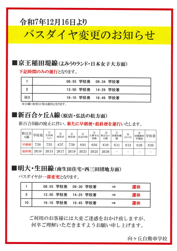 ※令和7年12月16日~バスダイヤ変更のお知らせ※