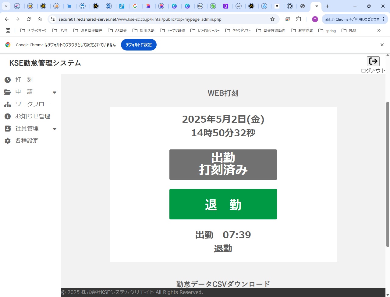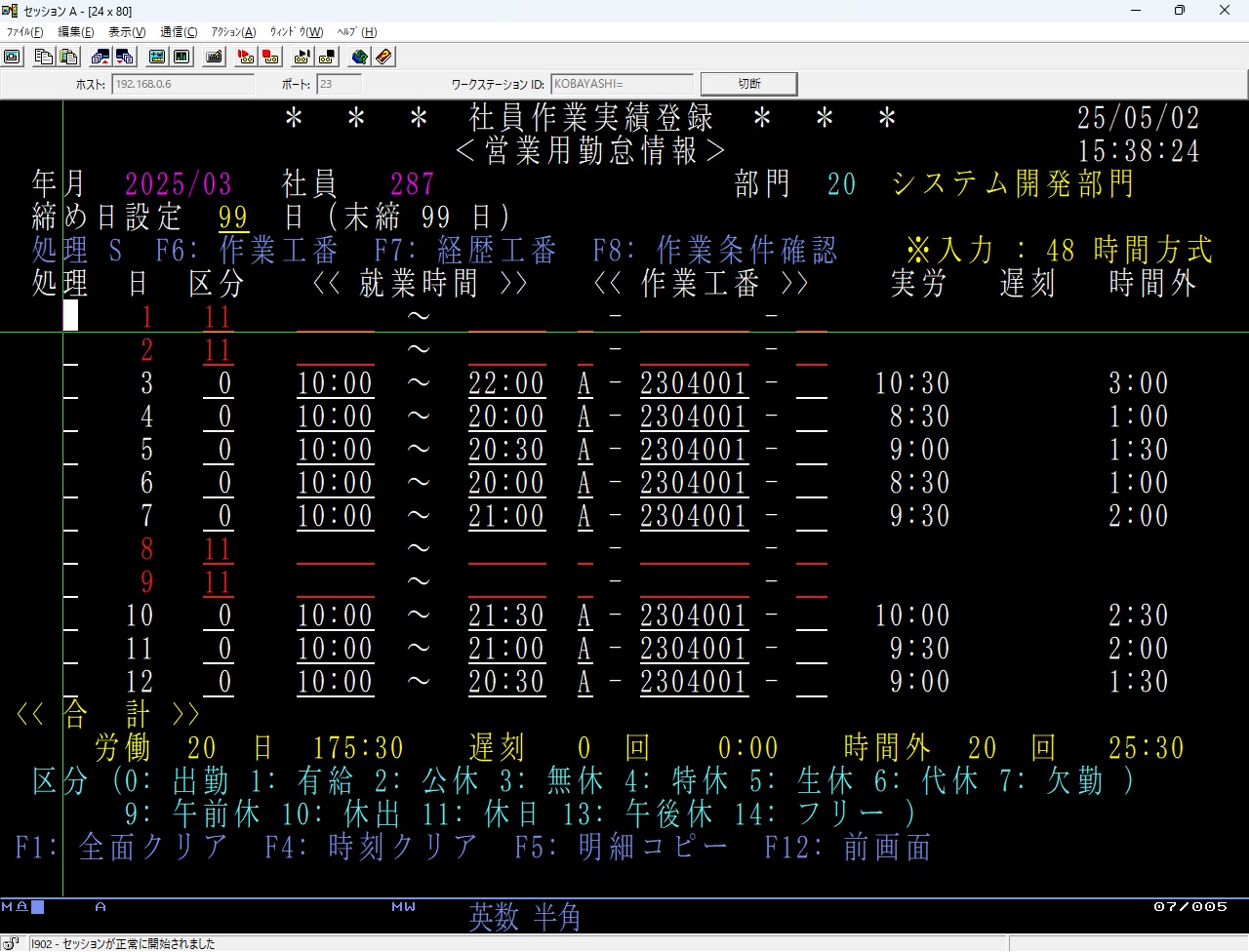以前のシステムでは、勤務表を基に時間を手入力していましたが、打刻機能を使用しているため時間入力がなくなりました。