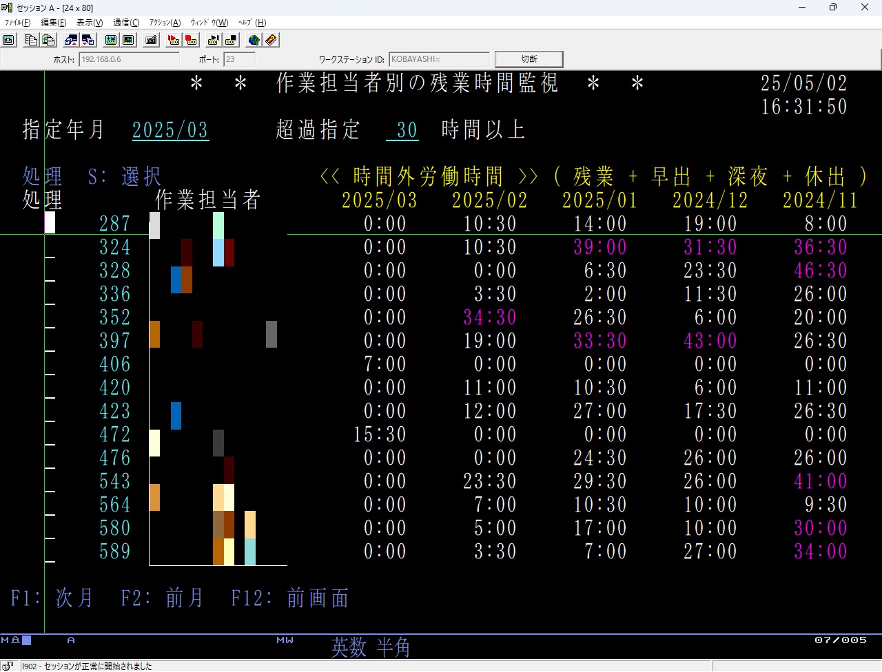 固定契約の場合は問題ありませんが、控除対象の最低時間、精算対象の上限時間が決まってる契約では、祝日の多い月など稼働時間の把握が必要です。新システムでは当日、または前日時点での稼働時間が一目でわかるため、状況に応じた作業指示を出せるようになりました。