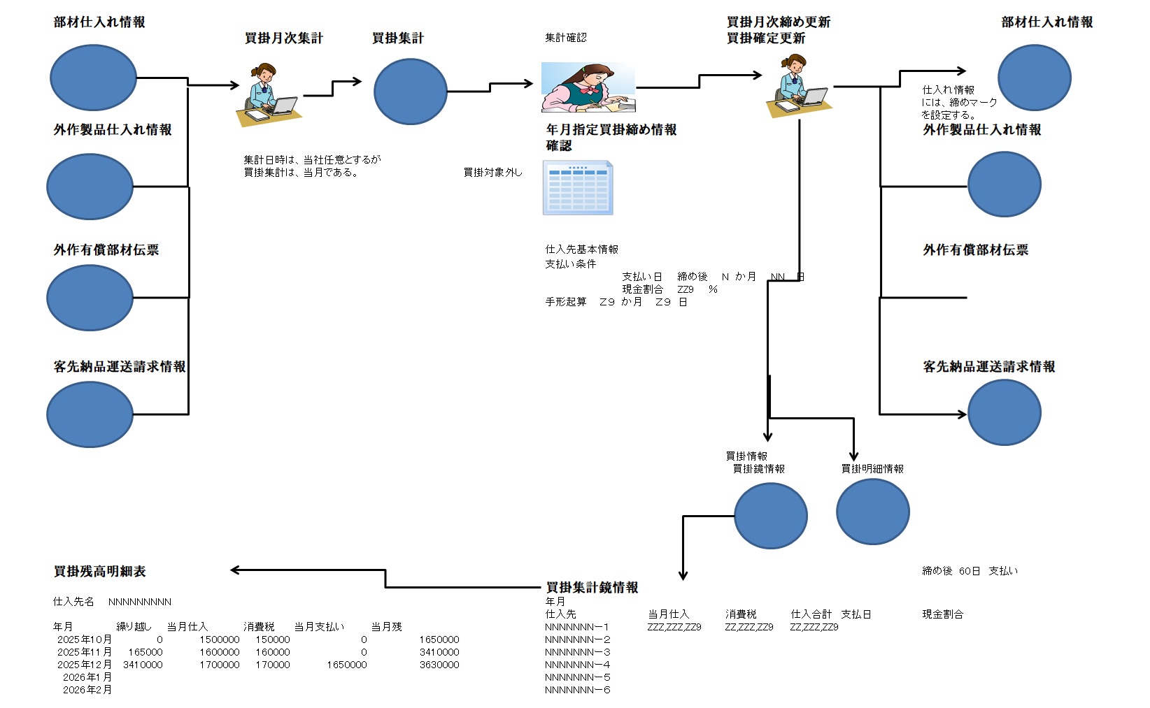 部品、材料および外注製作品の入荷(検収)情報に対して、買掛情報とするための予備更新(仮締め更新)を行います。