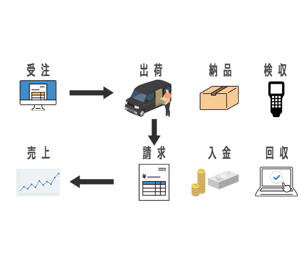 データの入力は最小限、受注入力したデータは請求、回収まで連携します。