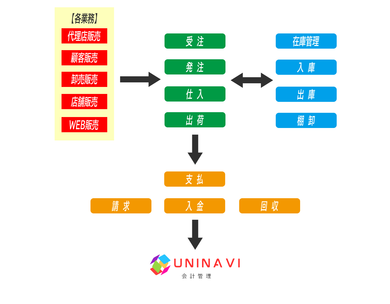 一般顧客向けの販売管理です。受注から出荷、入金回収までの業務をカバーします。