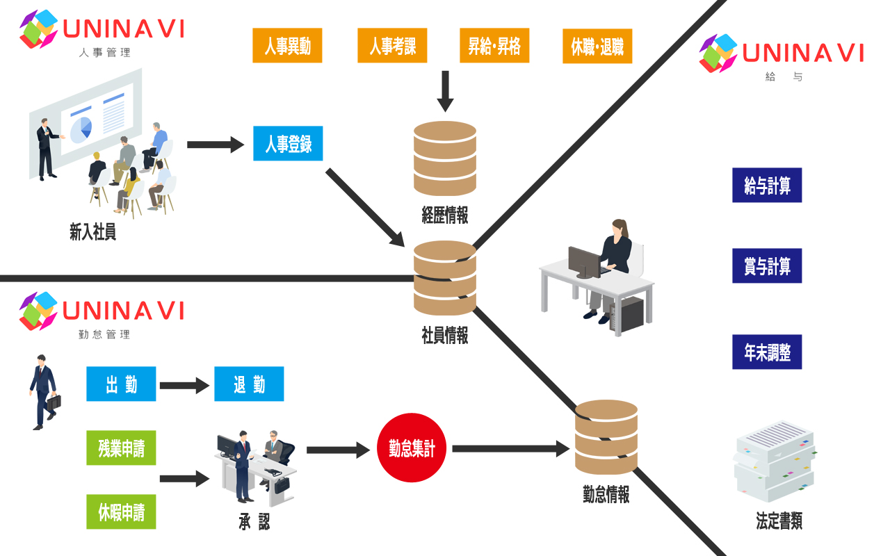 UNINAVIは、販売・仕入・在庫・生産・人事・会計など、