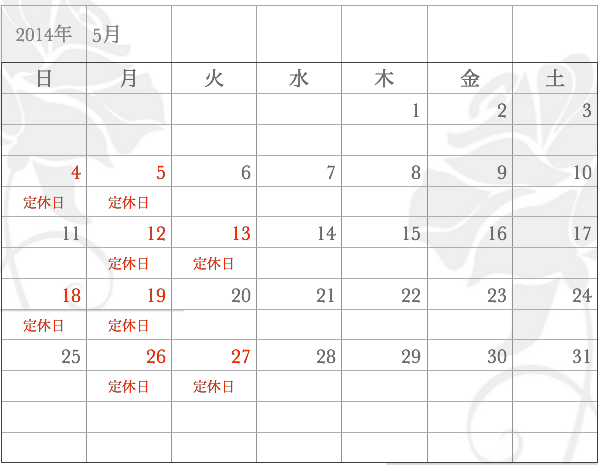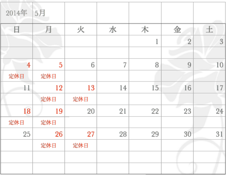 5月の営業日をお知らせ致します